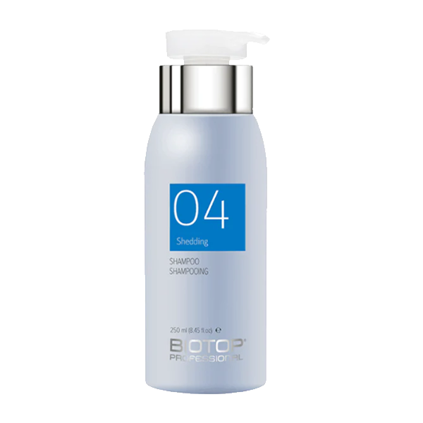 Biotop Professional 04 Shedding Shampoo is a nutrient-rich formula specifically formulated to strengthen hair and help prevent hair loss and shedding.